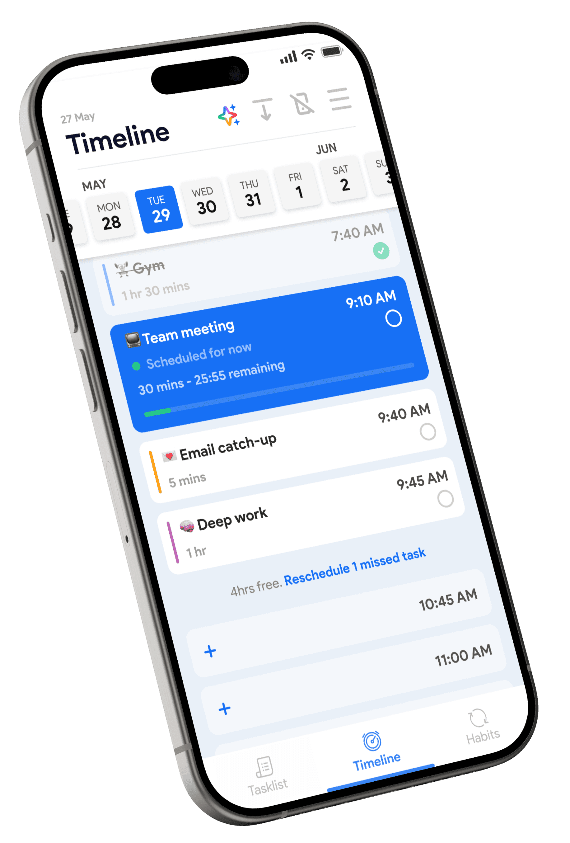 Reshuffles your whole day instantly