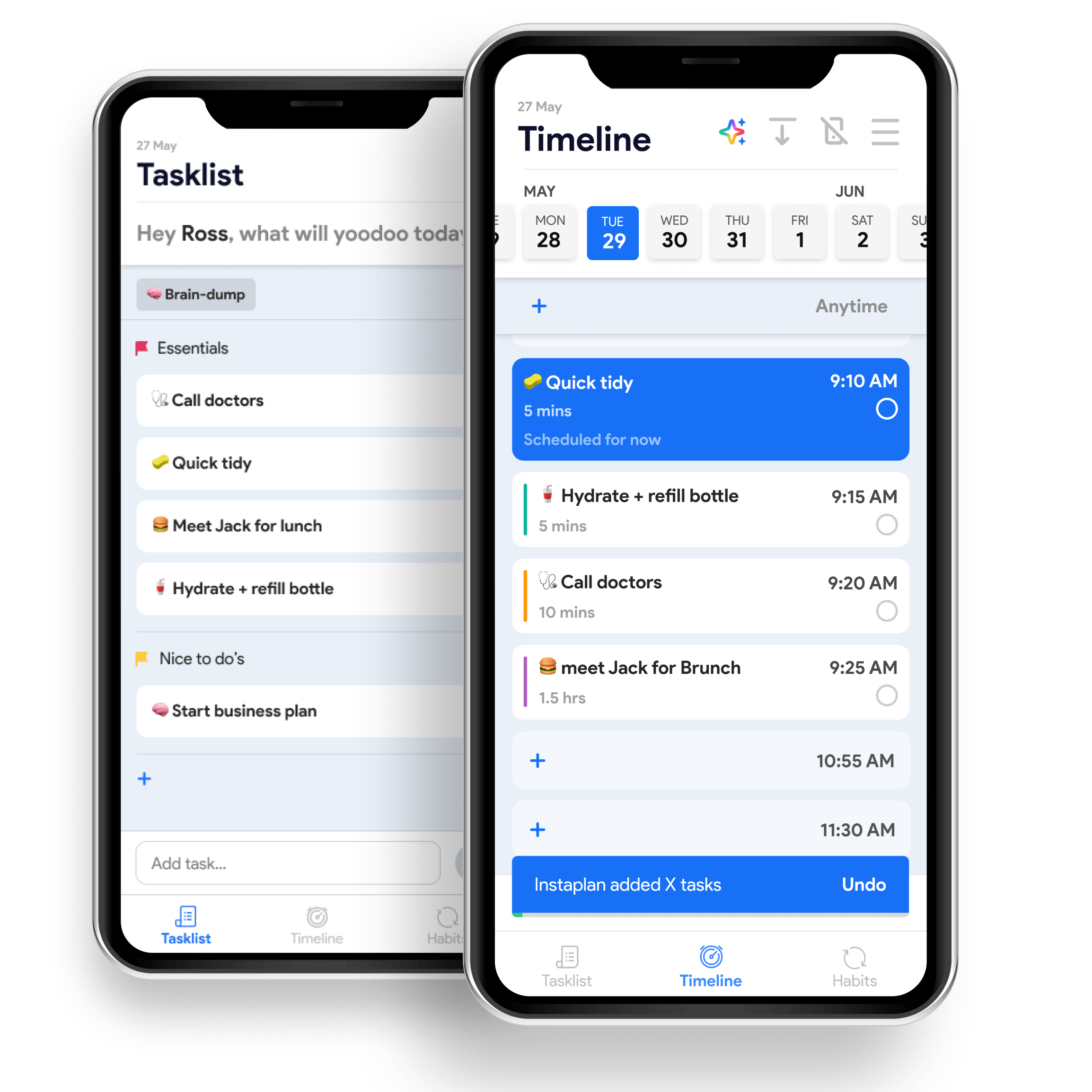 Most apps give you an endless list or a calendar. Yoodoo gives you a timeblocked daily plan, so you always know what to do right now.